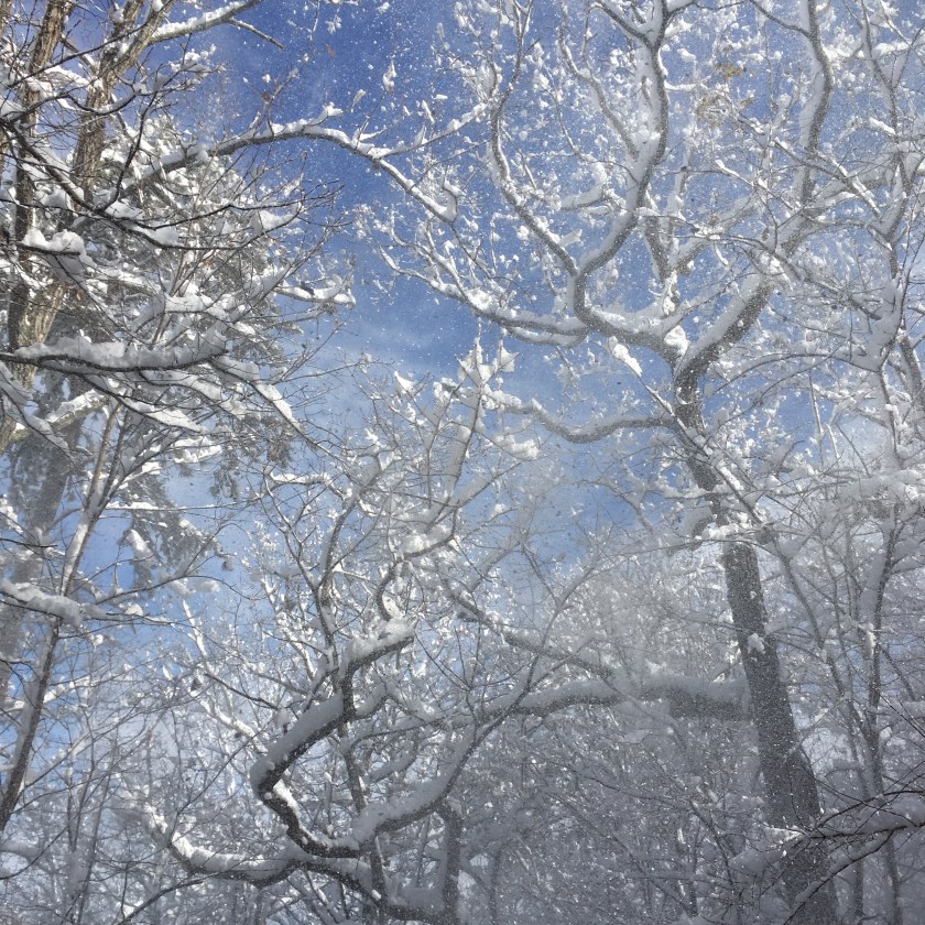 By the end of the day, most of the snow has blown off the trees. Fleeting beauty.