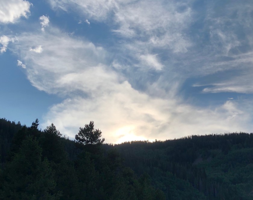 A beautiful drive to Minturn for dinner, all squeezed into one car so as to be together for the vistas and conversations. Then as the day drew to a close, we gathered for a slide show of recent travel my brother and his wife (my other sister) had enjoyed, cruising the fjords of Norway. Stunning!