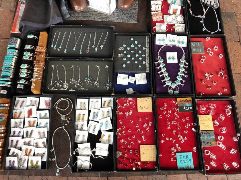 Today’s plan was to start with coffee, then browse the wares of the Native American artisans who set up their selling stools and blankets along the north side of the Santa Fe Plaza.