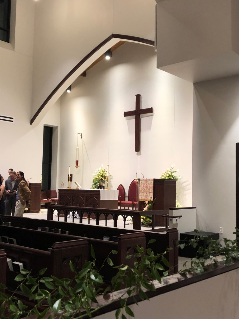 Saturday evening we attended a service at Holy Comforter Episcopal Church. It was a service of celebration with a baptism and Holy Eucharist, as the parish’s new worship space was dedicated. Beth vested and processed with diocesan clergy. I sat with a dear friend who is a member of the parish. A packed church led an usher to seat the two of us in the seating reserved for clergy. Clearly the priesthood of all believers.