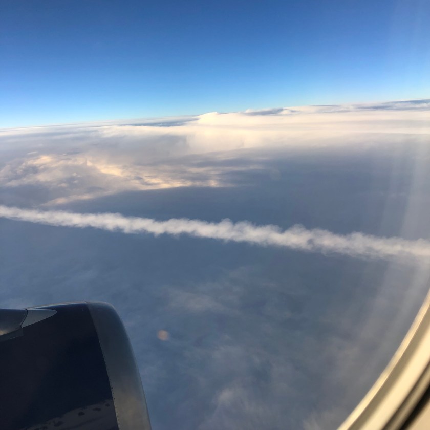Now in midair gazing out as day becomes night. A beautiful ending outside my window.