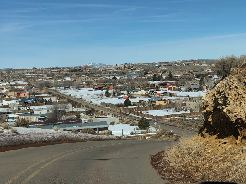 The morning’s drive south to Albuquerque was glorious. Thanks to the recent snowfall, the hills near and far were dazzling. I love this part of the country so much.