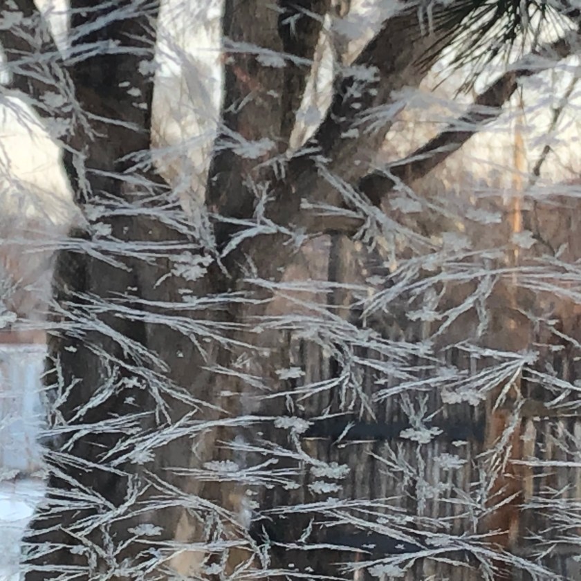 The windshield was covered in ice-art.