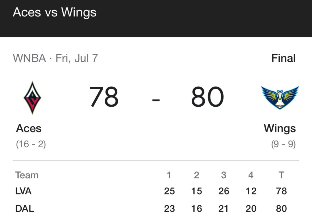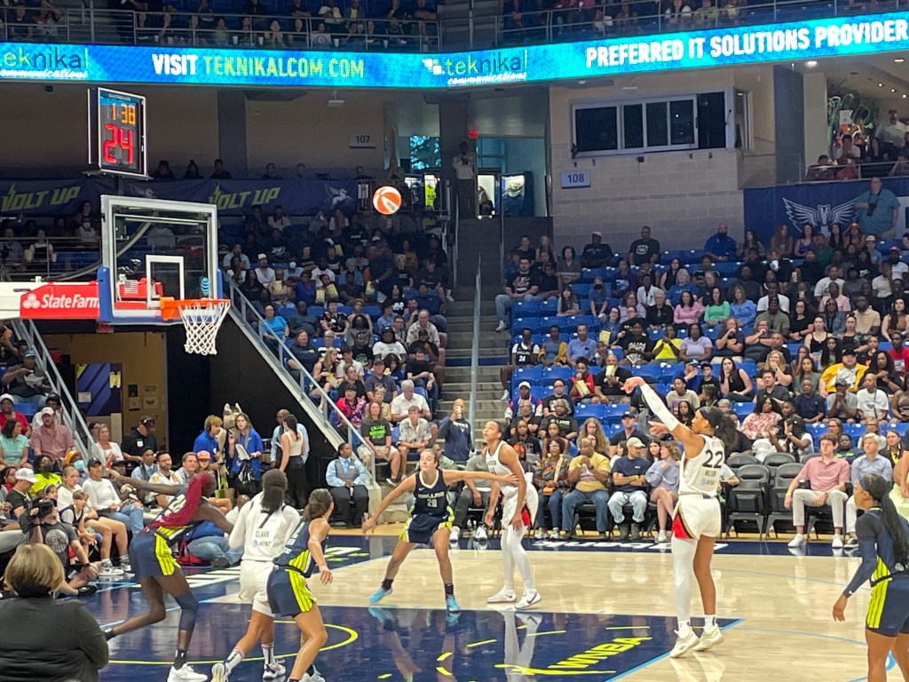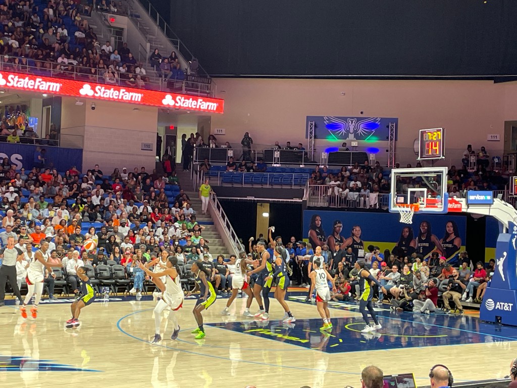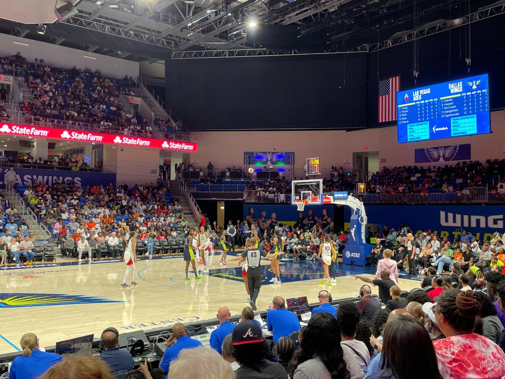 The game was close the entire time. While we loved two players on the Las Vegas ACES team, we were for both teams – and in the end, for the home team, the DALLAS WINGS.