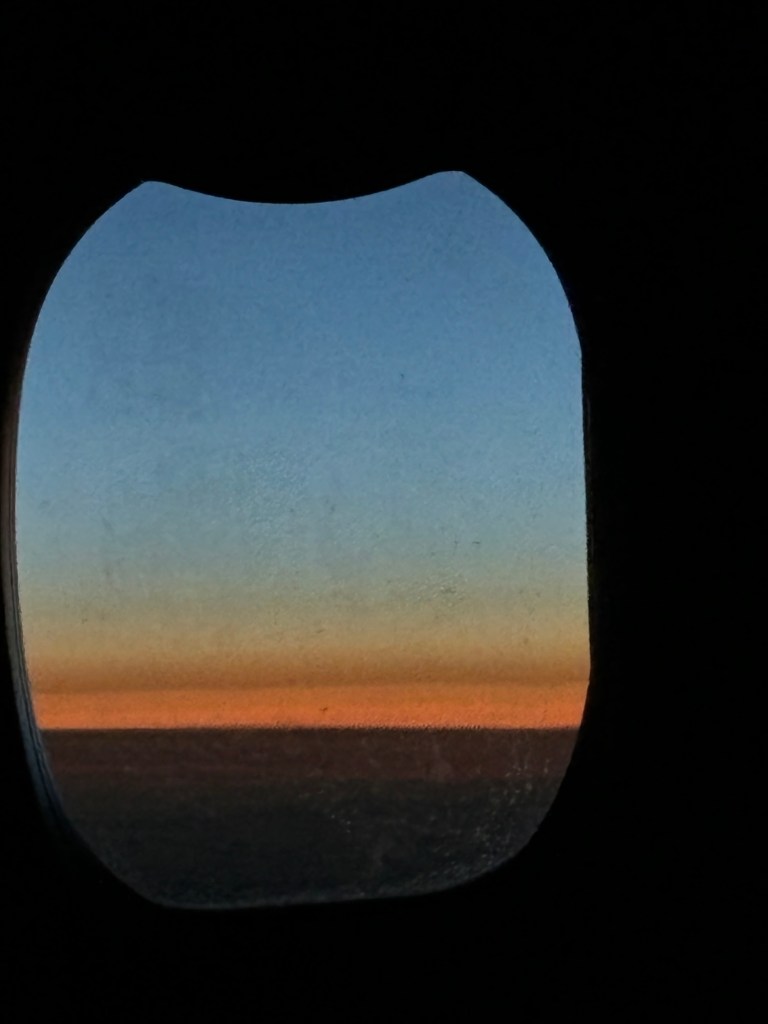 Flying overnight, the northern lights made an appearance – across the aisle. From my seat this is what I saw.