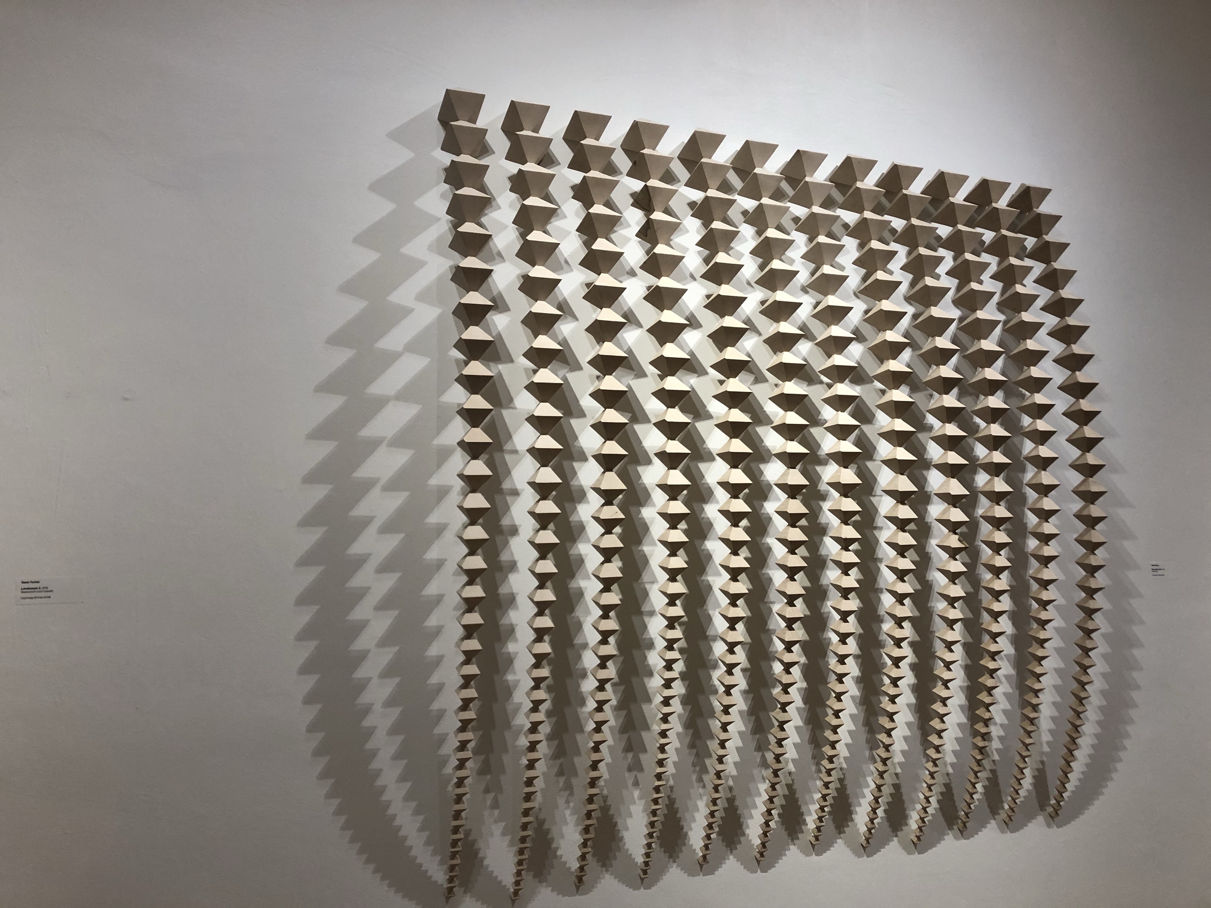 Though fixed and stationary, there is movement. The shadows cast from the hanging sculptures move in shades and in texture.